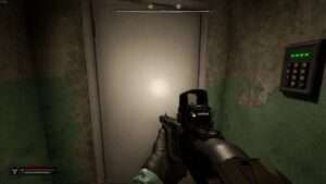 V chodbě najdete dveře chráněné kódem. Zadejte kombinaci, kterou jste dostali od doktora – 1995.