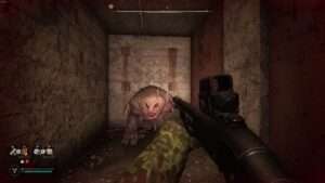 Projděte otevřenými dveřmi do další místnosti, kde vás napadne krvežíznivý mutant. Porazte ho a pokračujte dál.